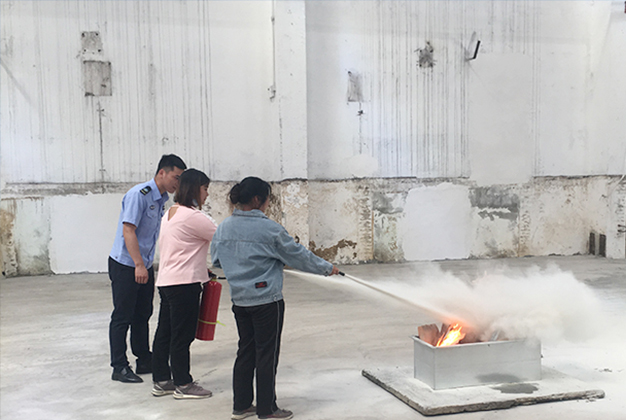 培训过后,教官又带领大家进行现场演习,学以致用,让大家真正了解灭火器的使用方法。