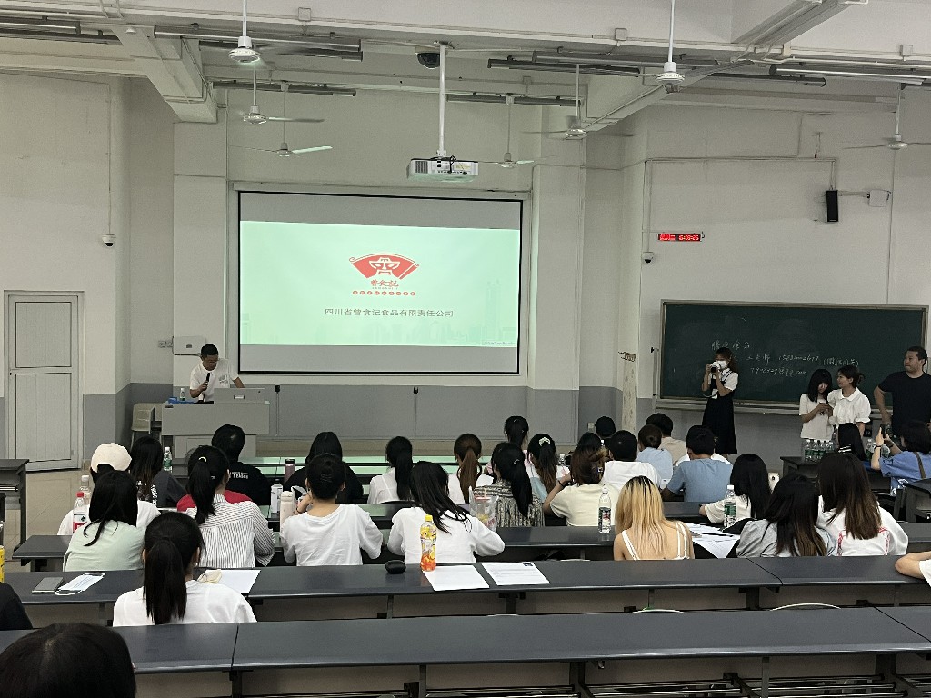 6月15日,我公司在学校举行了校园招聘宣讲会,本次宣讲会主要针对食品研发方向的岗位,由公司总经理亲自通过PPT向在场的同学展示了我司建立以来,秉持着“打造优质产品,服务客户、创造价值”的企业使命,将我公司打造为“受人尊重的餐饮食材标准化专家”的企业历程。随后宣讲了我司的一些规章制度、福利待遇、企业文化、现有产业结构和组织结构。并现场解答了同学们的疑问,最后真诚的邀请旅游学院的同学们加入曾食记大家庭,实现自己的梦想!